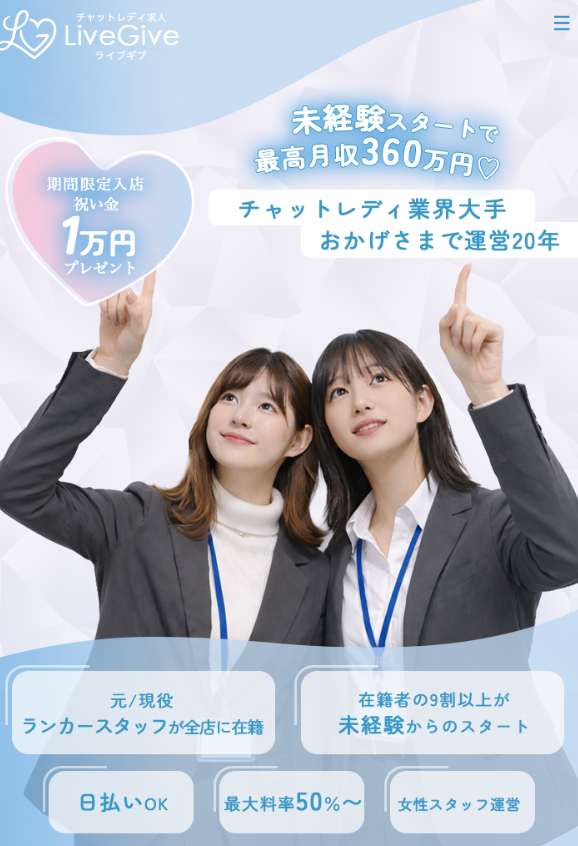 ライブギブは、元チャットレディの女性マネージャーによるサポートが充実した大手事務所です。